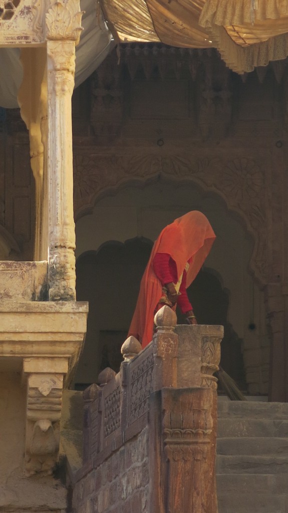 Un’ottantina di chilometri fuori da Udaipur, una bellissima strada si inerpica sui monti Aravalli, battuta da qualche motociclista in sella a Royal Enfield fuori dal tempo. Ritornati in pianura, nella mistica Ranakpur si trova un complesso di templi giainisti circondati da una natura silenziosa. I templi sono un obbligo da queste parti. Ti viene anche voglia di saltarne qualcuno e passare la giornata a chiacchierare con un sarto che in un paio d’ore ti cuce praticamente addosso l’abito tradizionale che vuoi. E poi c’è Jodhpur la “blu”, bella e pulita nel suo centro storico. Appena fuori, su una collina, il Mehrangarh è una fortezza che domina la città. Impressionante per maestosità e complessità architettonica. Il paesaggio si è fatto più estremo, arido, difficilissimo nelle giornate d’estate. Jaisalmer è in mezzo al deserto di Thar. Il driver preferisce affrontare l’ultimo polveroso tratto di strada con più luce possibile. L’impatto serale con le mura di cinta e i numerosi bastioni che difendono la città vecchia, con il suo grumo di templi giainisti, è di grande effetto.