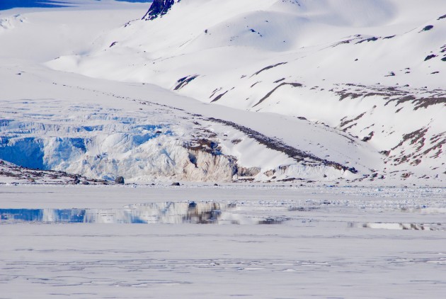 La Nordstjernen funziona come un treno locale. Tappa al Monaco Glacier, con la sua cascata di ghiaccio che scende fino al mare. Poi dentro il Bockfjord, poi a terra con i gommoni, poi una lunga, faticosa, scarpinata nella neve alta fino ad arrivare a una piccola, stupefacente cosa. Cioè una minuscola polla d’acqua calda nella roccia. È la prova dell’esistenza di un vulcano da qualche parte là sotto che sembra che non erutti da qualche migliaio di anni. La sorgente sembra più un’acquasantiera.