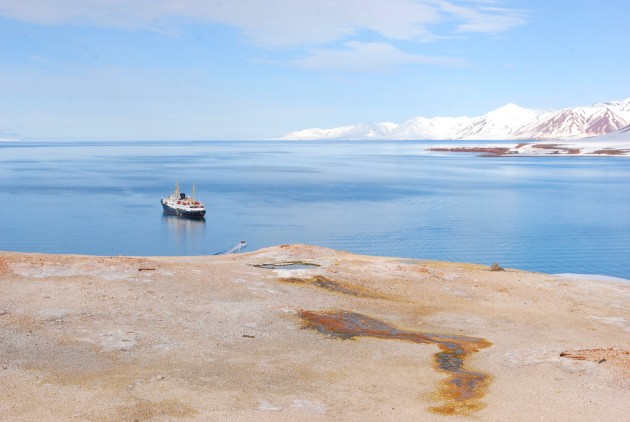 C’è una nave là fuori, attraccata in banchina. Una bella nave filante, costruita ad Amburgo nel 1956 e poi rifatta tante volte nel corso degli anni, rossa, come tutte le navi nordiche che devono farsi vedere nelle nebbie e nelle bufere, solida. Si chiama Nordstjernen, ha cabine piccole, da marinaio, un salone di legni lucidi e il sapore delle vecchie navi. Fa parte della flotta Hurtigruten, quella dei postali, solo 80 metri di lunghezza, solo 15 nodi di velocità, al massimo. È una nave leggendaria, un bel modo per andarsene in giro per l’Artico. Anzi, l’unico. Così si va in nave. Dai un’occhiata alla carta geografica e scopri d’essere dentro un intricato merletto di isole scavate dai fiordi. Il mare Artico si insinua dappertutto distribuendo salmoni e azzurro dentro le terre gelide. Questo di Longyearbyen è l’Adventfjorden, braccio laterale dell’Isfjorden; Spitsbergen la più grande di tutte le isole dell’arcipelago. Non chiamatela crociera, è solo un modo, anzi l’unico modo, per raggiungere luoghi altrimenti inaccessibili.