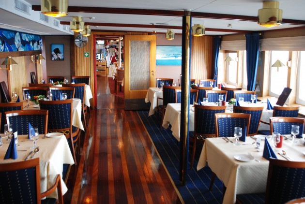 E la navigazione continua. La Nordstjernen è affascinante. Senti di stare su una nave vera, mica quei palazzi galleggianti che sono le star da crociera, tutte spettacoli serali e discoteche sfavillanti. Le cabine sono da marinaio. Strette, letti a castello. Il salone concede qualche lusso, ma moderato e in perfetto stile. Legno che odora di legno, l’ottone che luccica ma senza esagerare, piccoli tavoli e menù tradizionale. Poi i ponti ingombri di strutture tecniche, le scialuppe piuttosto dei lettini da solarium. Fuori scorrono i profili scuri delle isole e ogni tanto si approda. A Mushamna, nel Woodfjorden, dove c’è una vecchia stazione di caccia. E vedi dal vero quel che hai visto nel museo di Longyearbyen. Una capanna di tronchi dove i cacciatori vivevano, la piccola baracca che era il gabinetto, le trappole appese all’esterno, la dispensa, cioè una specie di torre protetta dal filo spinato dove mettere il cibo fuori dalla portata degli orsi. Tutto bianco di neve, molti uccelli nel vento, l’aria tersa. Un paesaggio limpido, da manuale.