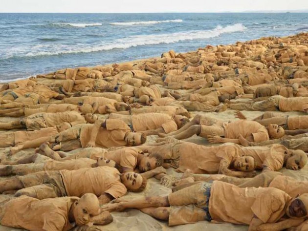 Ci sono le foto da pugno nello stomaco dell’artista cinese Liu Bolin. Sul molo del porto di Catania è ricoverato in secca il barcone che ha trasportato un mucchietto di migranti dalla Tunisia. Sei bambini egiziani, stremati dal viaggio, sono annegati cercando di guadagnare la riva. Mancavano pochi metri alla spiaggia, ma non ce l’hanno fatta. L’artista, pittandosi dalla testa ai piedi con gli stessi colori della carretta del mare (si è sottoposto anche a sei ore di make up per ogni click) ha scelto di fondersi con il relitto e con la storia di cui esso è testimone silente. E’ stato il suo primo scatto del progetto “Migrants”, sponsorizzato dalla galleria Box Art di Verona. Anche i naufraghi salvati dalla Marina Militare al largo della Libia sotto l’obiettivo di Massimo Sestini diventano momenti unici di storia.