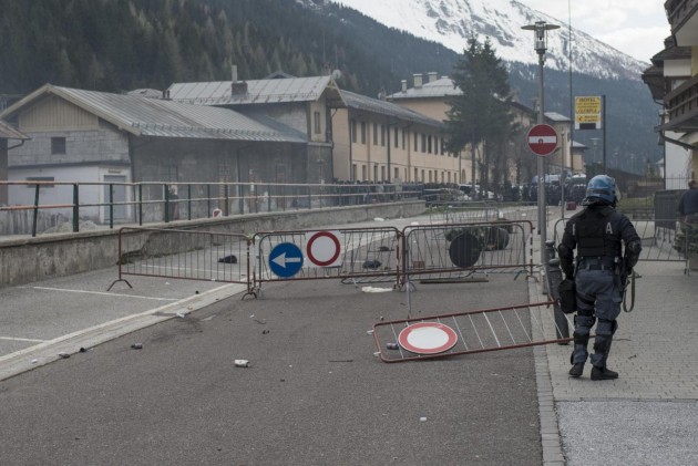 Dopo un primo attacco, un gruppo di antagonisti si è dileguato nel paesino. Alcuni hanno invece attraversato la linea ferroviaria e hanno raggiunto l’autostrada che corre parallela alla ferrovia. Altri hanno occupato i binari. Per questo la linea ferroviaria internazionale è stata interrotta. I treni sono rimasti fermi prima del valico italo-austriaco. Ma dopo poco polizia e carabinieri, che hanno fronteggiato i vari gruppetti, sono riusciti a sgomberare sia la linea ferroviaria internazionale che l’autostrada. Dopo aver disperso il grosso dei partecipanti, le forze dell’ordine sono tornate verso il paesino di frontiera lungo una strada statale, sulla quale sono rimasti i resti degli scontri. Grossi sassi, centinaia di bengala e il manico di un’ascia.