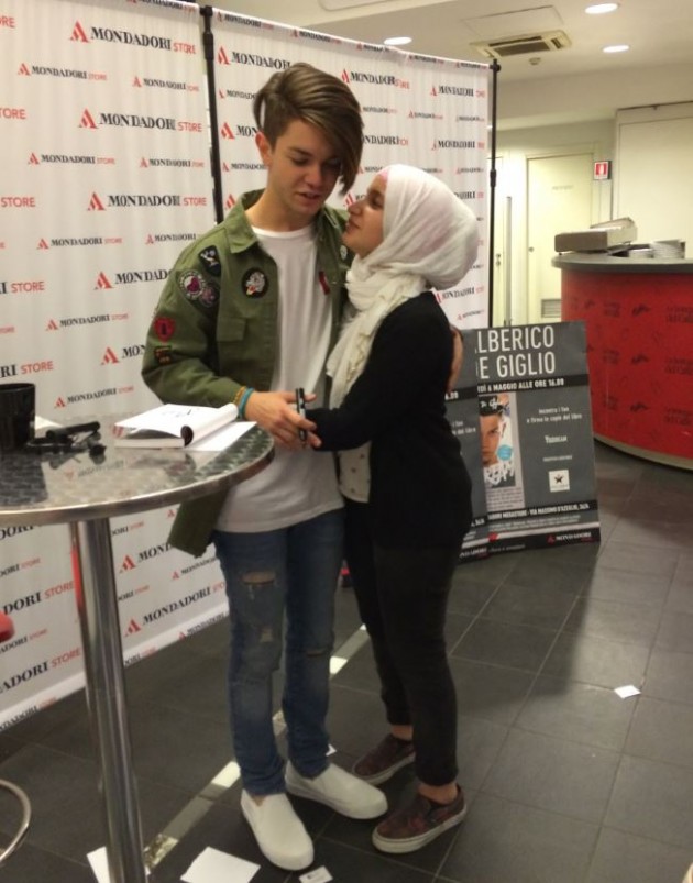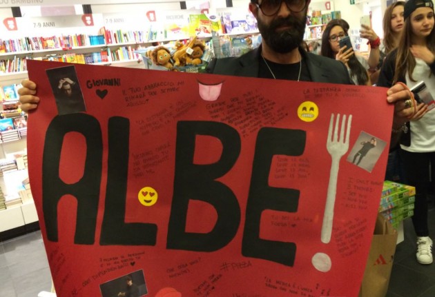 Vans ai piedi, jeans vagamente hypster verso l’orlo e strappati sulle ginocchia, t-shirt bianca e un camicione verde militare pieno di stemmi, Alberico De Giglio è l’apoteosi del riscatto personale adolescenziale, quello che ha combattuto il bullismo, ha preso le botte dai gradassi della scuola, ma che dopo aver rasentato i muri dalla vergogna per non buscarle è diventato corpo, viso e anima cult per migliaia di adolescenti davanti al pc. Dopo anni a registrare video online, la consacrazione sulla carta è arrivata in poche settimane. Piani alti della top ten per lui, tra il libro di Papa Francesco, Andrea Camilleri e Umberto Eco. “Abbiamo stampato 60mila copie e ne abbiamo vendute tra le 30 e le 40mila. Tra una presentazione è l’altra è tutto esaurito tanto che stiamo preparando una nuova ristampa”, spiega Stefano Peccatori, direttore generale libri della Electa, che segue di persona il tour di Alberico, e quasi gli asciuga il sudore dalla fronte. “Mai visto così tanta gente in fila per un autore”, continua Peccatori. Nemmeno per Baricco, McEwan o Sepulveda.