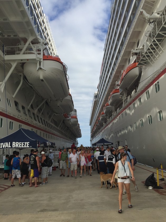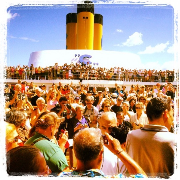 Le escursioni sono diverse, ma spesso hanno una caratteristica comune: si fanno di fretta, vedendo inevitabilmente poco. E poi per molti rompono un equilibrio. Insomma, si sta così bene sulla nave che alla fine si scende quasi per dovere. E non tutti, si diceva, scendono. Persino quando si sta fermi in porto un paio di giorni. Risalire fa esclamare un bel “finalmente a casa!”. Anche il reimbarco di 6.300 persone (teorico eppure possibile) ha qualcosa di epico. Qualche crocierista perso o abbandonato sull’arcipelago di Tonga, su una spiaggia dell’isola di Pasqua, su un litorale delle Cayman, in uno shop di Bahamas mentre contratta un paio di collanine ci sarà pure stato nella lunga storia delle crociere.