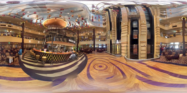 Che cosa faccia pensare che sia una vacanza da sogno stiparsi in 6.300 in un grattacielo newyorchese sdraiato senza poter uscire quando si vuole, neppure se ti viene la claustrofobia, è presto detto. Il grattacielo si muove e tu non fai la fatica di muoverti. Non ti devi mettere a frugare il mondo, cercarlo, scoprirlo: te lo fanno scorrere davanti all’oblò. All’oblò, oppure a grandi finestre o addirittura balconi. Naturalmente se hai una cabina come si deve. Funziona anche nel caso disgraziato di essere titolare di una cabina cieca, senza uno straccio di buco “tuo” verso l’esterno. Sulla Harmony si sono inventati il balcone virtuale. Punto esclamativo. Un colpo di genio. Hai risparmiato sulla cabina e ti devi accontentare di uno stanzino, certo lussuoso ma sepolto nella pancia della nave che quando devi ritrovarlo hai bisogno del Gps per non perderti fra corridoi infiniti? Balcone virtuale, cioè uno schermo dal soffitto al pavimento che proietta in tempo reale quel che succede fuori. Magari non sentirai il profumo del mare, non sentirai il vento, il caldo, il freddo, ma vedi esattamente quel che vedresti nella cabina con un balcone vero. In milioni di pixel e alta definizione, naturalmente. Puoi regolare il contrasto, far diventare più blu il mare, se ti sembra troppo grigio, e non corri neanche il rischio di cadere di sotto. E poi, naturalmente, ci sono gli spazi esterni. Per tutti. Nel caso della Harmony, ma in genere anche le altre navi non scherzano, sedici ponti, che sarebbero i “piani”. È tutto un brulicare di ascensori. Su e giù, giù e su. Ci sono bar e ristoranti all’aperto, piscine con sedie a sdraio, caffè e tutto ciò che serve per stare a contatto con il mondo che ti scorre di lato. Un sacco di divertimenti e comodità. Scivoli, minicampi da golf, aree giochi per grandi e bambini. Sulla Harmony c’è pure un Central Park, newyorchese anche lui. Si chiama proprio così il parco della Harmony, con tanto di sentieri fra 12.000 piante. Vere. Insomma, è proprio come stare in un bel villaggio turistico, o in un albergo. Solo che si muove. D’accordo, non puoi uscire. Ma questo è secondario: dentro c’è tutto quel che ti serve. I primi giorni hai solo il tempo di perlustrare la nave.