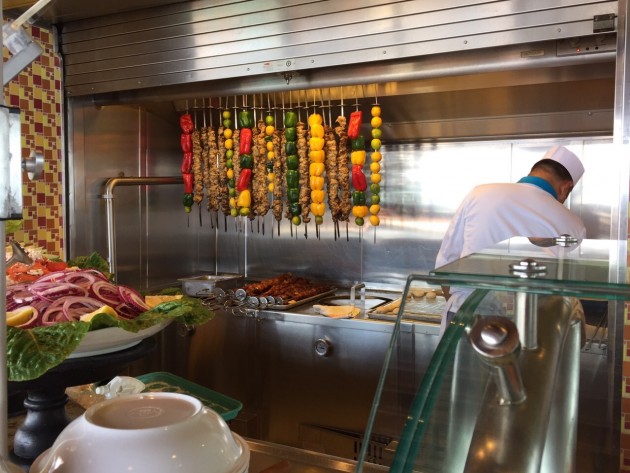 Ecco perché le fanno grandi, le “grandi navi”. Se devi stare dentro lì, senza scampo, qualcosa devi fare. Il vero appassionato della crociera classica, l’esperto, per prima cosa guarda i metri. Sotto una certa lunghezza non se ne parla. E i ponti. Sotto un certo numero di ponti non se ne parla. Più lunga è, più cose ci stanno dentro. Palestre, beauty farm, casinò. Ristoranti e bar: a decine. I ristoranti sono di status diverso. Normalmente sei destinato a quello centrale, quello compreso nel biglietto. Bevande escluse. Uno stanzone di solito gigantesco, di solito esageratamente barocco e luccicante, che ha il compito di trasmettere sensazione di lusso e benessere. Far mangiare tutte insieme 5-6.000 persone è difficile. Così si va a scaglioni, mille, duemila alla volta. Nella pancia della nave quel che non si vede è un’immensa cucina con un tripudio di fornelli sempre accesi, e un esercito di cuochi, camerieri, inservienti, lavapiatti sempre in movimento. Una specie di formicaio dove centinaia di omini affannati, pelle ambrata e uniformi bianche, si incrociano nelle loro traiettorie perfettamente programmate. Il tutto si traduce in una fornitura di pasti a getto continuo.