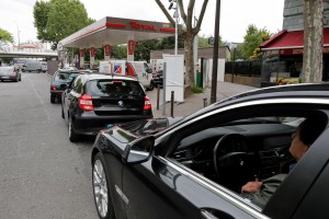 Drivers form a queue as they wait at a gas station due to blockades of several oil depots by protesters opposed to the governments proposed labor law reforms in Paris, France, May 26, 2016. REUTERS/Benoit TessierATTENTION EDITORS FRENCH LAW FORBIDS THE PUBLICATION OF VEHICLE REGISTRATION PLATES IN PUBLICATIONS IN FRANCE