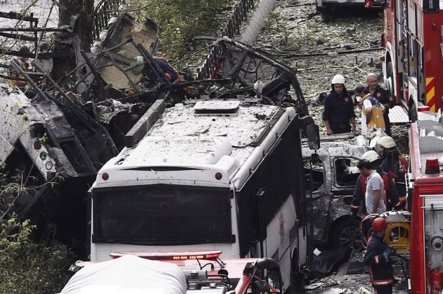 ATTACCO KAMIKAZE AD ANKARA, MARZO 2016 – Fece 37 morti nel quartiere di Kizilay, vicino a una fermata dell’autobus prossima al parco pubblico Guven. Almeno 125 persone sono rimaste ferite. L’esplosione è stata innescata da un’auto che è andata a sbattere contro un autobus. Il governo ha puntato il dito contro i curdi del Pkk.