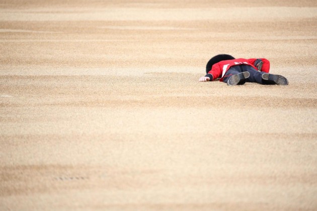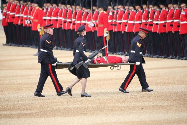 L’evento era storico: la Trooping the Colour, parata che si svolge ogni anno per festeggiare il compleanno della Regina. Ma in questo caso la Elisabetta compie 90 anni. Sarà stata l’eccessiva tensione o la stanchezza, ma una delle 1600 guardie britanniche impegnate nella cerimonia militare non ce l’ha fatta più ed è svenuta sul campo. Per una decina di secondi l’uomo è rimasto sdraiato a terra, da solo, mentre le altre guardie erano in piedi immobili e il pubblico osservava la scena. La guardia è stata poi soccorsa da un’infermiera e da altri due militari che lo hanno caricato su una barella.