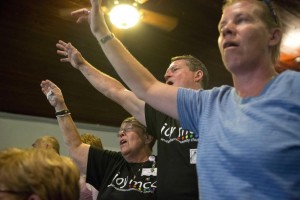 Jun 12, 2016; Orlando, Fl, USA; Members of the community gather for a prayer vigil late Sunday evening Joy Metropolitan Community Church for victims of the mass shooting at the Pulse nightclub. Mandatory Credit: Luke Franke/Florida Today via USA TODAY Network *** Please Use Credit from Credit Field *** Strage di Orlando, il dolore dei parenti, i soccoris, le vittime SIPA USALaPresse — Only Italy *** Local Caption *** 17777890