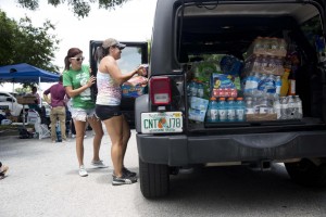 Jun 12, 2016; Orlando, Fl, USA; Orlando residents Ashley Gailey (left) and Sandra Vargas (right) help to load up a Jeep full of water and drinks to be distributed to OneBlood Donation Centers throughout the Orlando area. Orlando residents came in droves to support the victims of the deadly mass shooting that occurred early Sunday morning at the Pulse Orlando Nightclub & Ultra Lounge that left 50 people dead and over 50 in the hospital. Mandatory Credit: Luke Franke/Naples Daily News via USA TODAY Network *** Please Use Credit from Credit Field *** Strage di Orlando, il dolore dei parenti, i soccoris, le vittime SIPA USALaPresse — Only Italy *** Local Caption *** 17777079