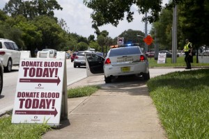 Jun 12, 2016; Orlando, Fl, USA; A sign outside the OneBlood Donation Center on West Michigan Street asks for good donors as Orlando residents arrive to support the victims of a deadly mass shooting that occurred early Sunday morning at the Pulse Orlando Nightclub & Ultra Lounge that left 50 people dead and over 50 in the hospital. Mandatory Credit: Luke Franke/Naples Daily News via USA TODAY Network *** Please Use Credit from Credit Field *** Strage di Orlando, il dolore dei parenti, i soccoris, le vittime SIPA USALaPresse — Only Italy *** Local Caption *** 17777063