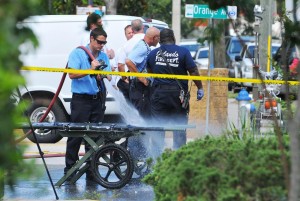 Jun 12, 2016; Orlando, Fl, USA; A member of the Orlando Fire Deparmtnet washes off gurneys as FBI and Orlando Police Department and the Orange County Sheriff’s office personnel investigate a shooting and terror attack at the Pulse nightclub on Orange Avenue where as many as 50 people have been killed. Mandatory Credit: Craig Rubadoux/Florida Today via USA TODAY Network *** Please Use Credit from Credit Field *** Strage di Orlando, il dolore dei parenti, i soccoris, le vittime SIPA USALaPresse — Only Italy *** Local Caption *** 17776634