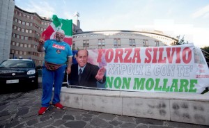 Un sostenitore di Berlusconi davanti all’ospedale