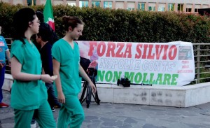 Un sostenitore di Berlusconi davanti all’ospedale