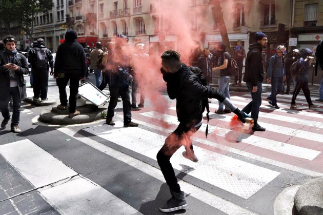Al passaggio dei manifestanti centinaia di casseur con il volto incappucciato hanno spaccato, tra l’altro, le vetrine di diversi negozi, alcune pensiline dei bus e parte dell’arredo urbano. Le violenze hanno di fatto bloccato il corteo: da oltre un’ora gli estremisti lanciano oggetti contundenti contro gli agenti in tenuta antisommossa che replicano con lacrimogeni nella rive gauche. Le Monde riferisce che un uomo è rimasto ferito alla schiena da un razzo che ha preso fuoco. Il quotidiano francese pubblica anche le foto di manifestanti che si rifugiano nei palazzi per sfuggire alle violenze e ai lacrimogeni.