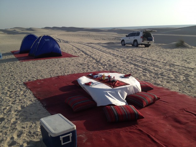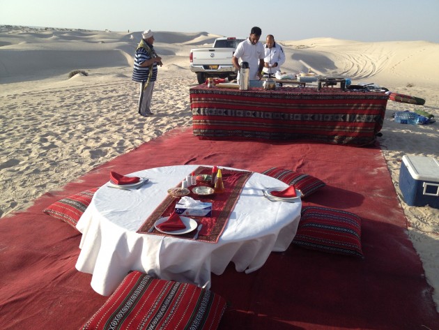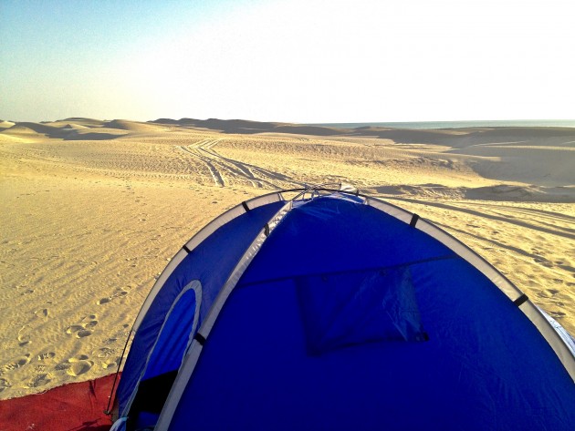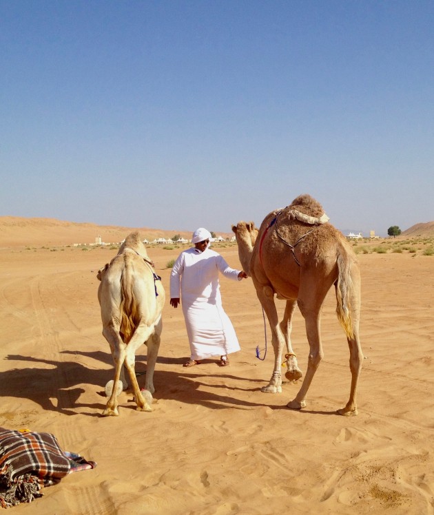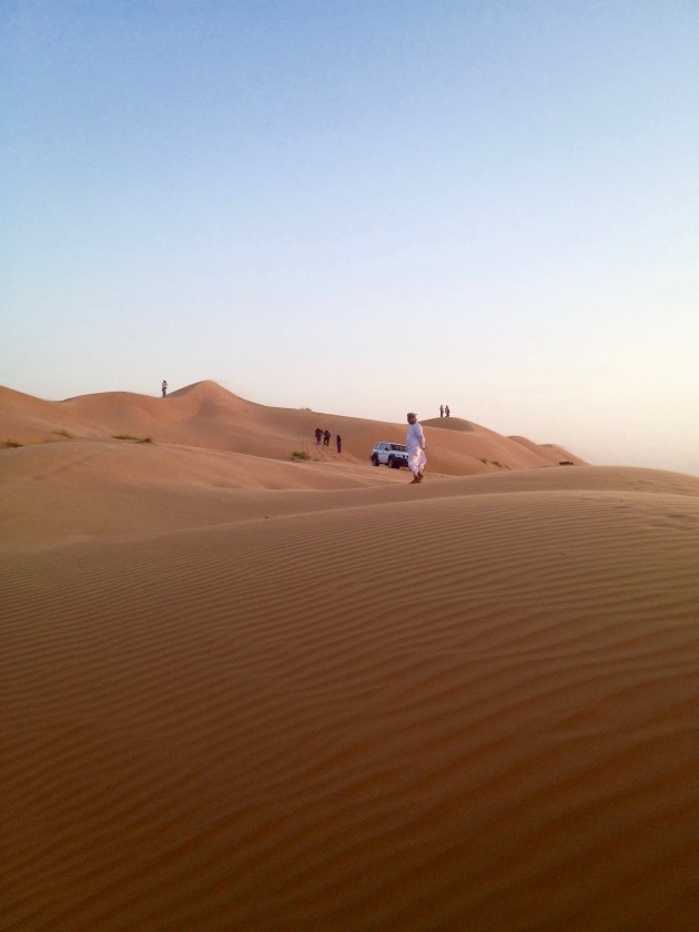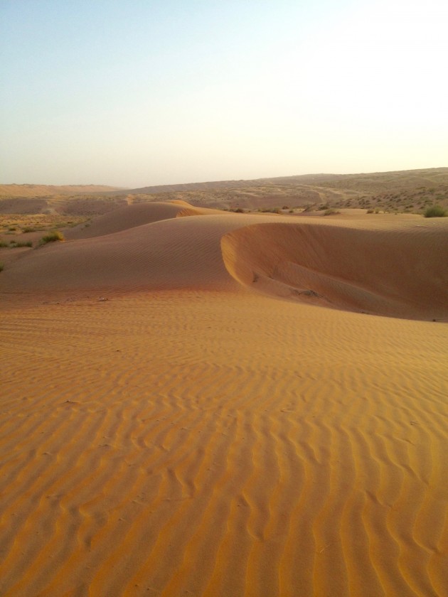 Poi il deserto. Due milioni e 220.700 chilometri quadrati dallo Yemen al Golfo, dall’Oman alla Giordania e all’Iraq; nell’area meridionale della penisola arabica c’è il Rub’ al-Khali, il “quarto vuoto”, che con i suoi 650.000 chilometri quadrati è la seconda più grande distesa di sabbia del pianeta. Si prende la fascia occidentale dell’Oman, dove ci sono anche le dune di Ash-Sharqiyah (Wahiba Sands), di Bawshar, di Ramlat Tawq. Nel sultanato o vivi a nord o vivi a sud. In mezzo deserto, che occupa l’80 per cento della superficie del Paese: 309.000 chilometri quadrati, appena più dell’Italia. La sabbia ocra chiaro sembra pettinata tutti i giorni, le piste piatte e veloci che ti pare di fare una Dakar. Ogni tanto un gruppetto di dromedari che spunta oltre il finestrino, la tenda di una famiglia beduina, una carovana di pick-up. La traversata da nord a sud è lunga e può essere faticosa, ma ti porta sicuramente al mare e nelle piacevoli città meridionali. Insomma, è un deserto addomesticato, ma che non perde il suo fascino. Una tenda di beduini è attrezzata a shop per turisti. Piccola concessione al business. Dentro è tutto reale. La titolare è vestita di abiti ricamati e ha il volto coperto dalla maschera in uso fra le beduine al posto del velo. Ogni tanto il deserto si eleva in dune magnifiche: le Wahiba Sands. Lì ci sono piccoli resort rustici, fatti di bungalow. Nel Khaluf niente bungalow, si pianta un campo di tende. Con il fuoco in mezzo, spiedini a cuocere, tè da bere alla luce della luna. Qui la sabbia non è più ocra, ma bianca come il latte.