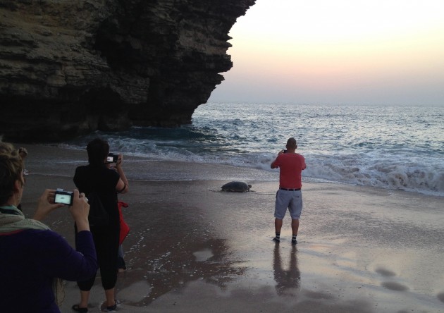 Poi un altro giorno si va a vedere le tartarughe che depongono le uova. In un incredibile posto che si chiama Ras al-Jinz, uno spiaggione dove decine di tartarughe si ritrovano puntualmente. A debita distanza è stato costruito un villaggetto di bungalow con ogni confort, un ristorante discreto e un piccolo museo. Cascasse il mondo, vengono sempre qui le tartarughe. Un appuntamento fisso che attira migliaia di turisti. Lento come una tartaruga, si dice. Lento, ma inesorabile. Quando il petrolio sarà finito si punterà sulle tartarughe.