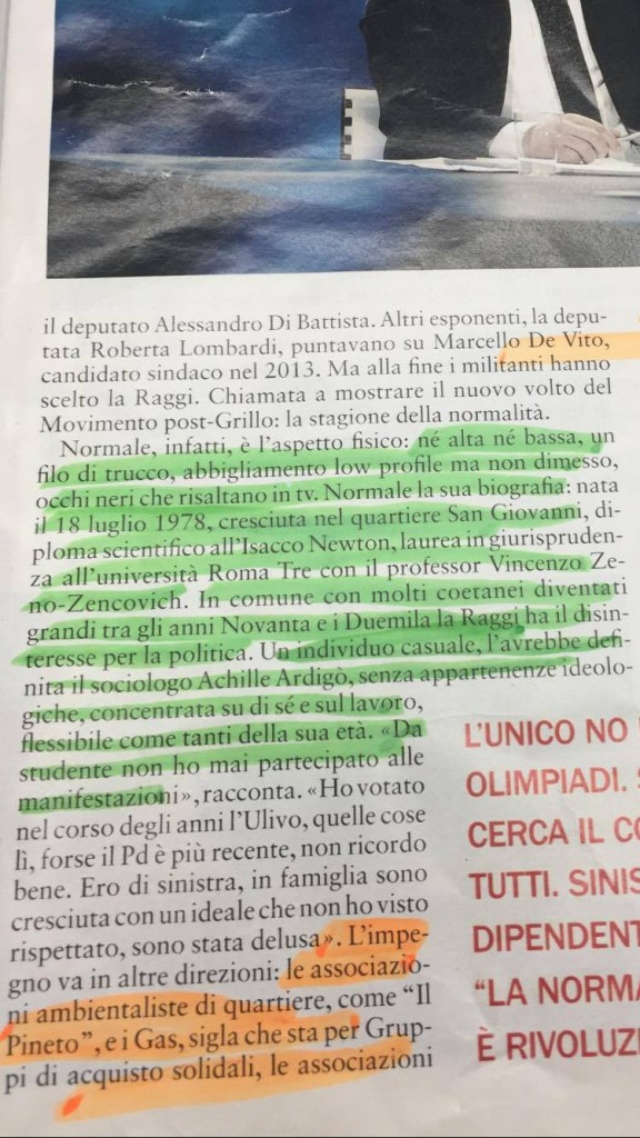 Il giorno dopo i ballottaggi, Massimiliano Scafi ha preso interi paragrafi scritti mesi prima da Marco Damilano e li ha inseriti nel suo pezzo-ritratto sulla prima cittadina della Capitale