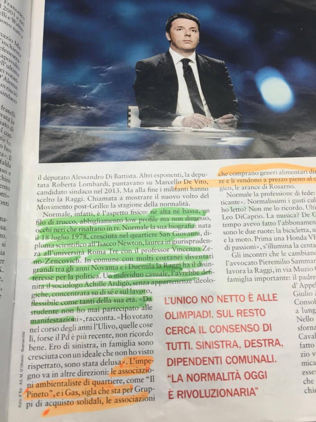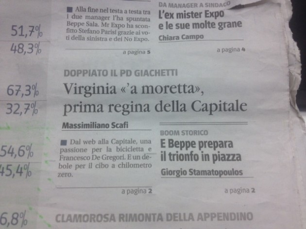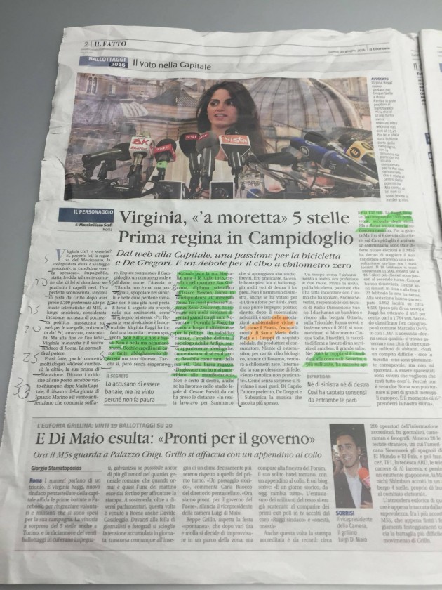 Virginia Raggi, Il Giornale copia interi paragrafi dall’Espresso. E pubblica il pezzo in prima pagina