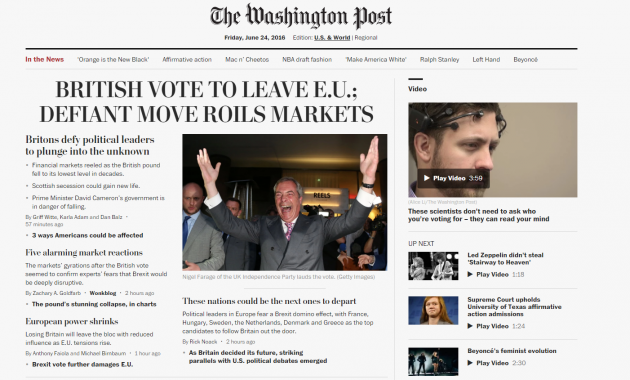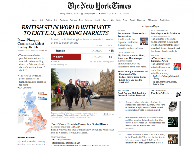 Brexit, Nyt: “Regno Unito diventerà piccolo e xenofobo?”. Wsj: “Usa temono colpo all’economia”. La notizia sui siti mondiali