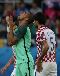 (160626) — LENS, June 26, 2016 (Xinhua) — Pepe (L) of Portugal reacts during the Euro 2016 round of 16 soccer match between Portugal and Croatia in Lens, France, on June 25, 2016. (Xinhua/Zhang Fan)
