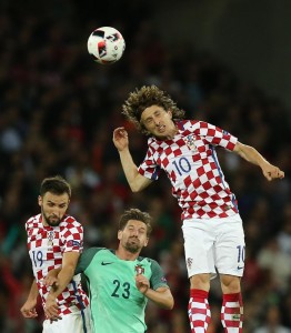 (160626) — LENS, June 26, 2016 (Xinhua) — Luka Modric (R) of Croatia competes during the Euro 2016 round of 16 soccer match between Portugal and Croatia in Lens, France, on June 25, 2016. (Xinhua/Zhang Fan)