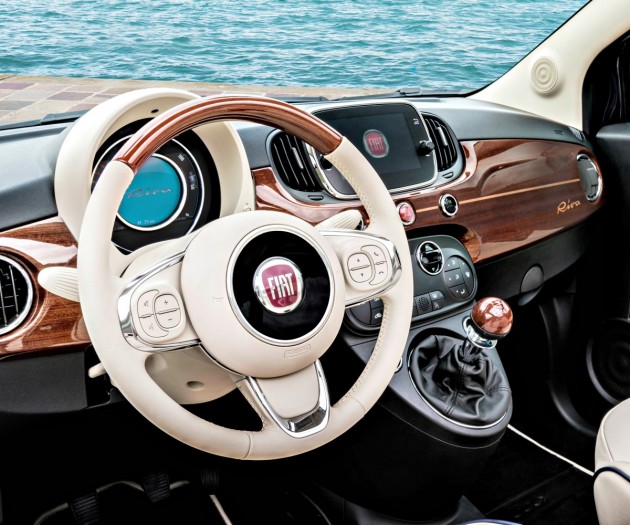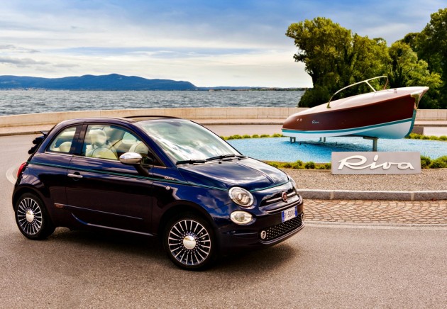 E’ estate, e pure la Fiat 500 si adegua. “Vestendosi” da barca, grazie all’operazione di co-branding con un altro pezzo di bellezza classica all’italiana: Riva. L’abito disegnato su misura per livrea e capote della piccola di casa Fiat è esclusivo, a cominciare dal colore: il cosiddetto Blu Sera, lo stesso di Aquariva Super (l’erede del mitico Aquarama). Ci sono poi i dettagli cromati e le finiture in tinta Acquamarina, ma soprattutto la plancia centrale realizzata in legno di mogano intarsiato con l’acero: firma inconfondibile dello storico cantiere navale italiano.