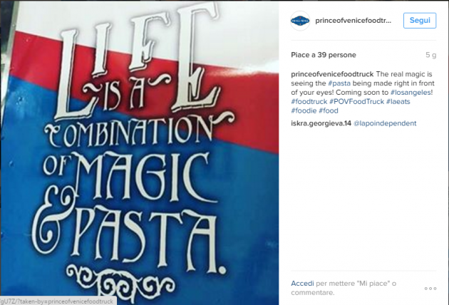 L’idea sarebbe scaturita dalla mente dello stesso Emanuele Filiberto durante una permanenza a Los Angeles. Secondo le sue parole, dopo aver visto tanti furgoni che vendevano cibo messicano e orientale, si sarebbe accorto dell’assenza di un rappresentante italiano; avrebbe allora deciso di riempire questa mancanza portando anche il cibo italiano per eccellenza, la pasta, sulle strade statunitensi. Così è nata la sua iniziativa battezzata “Prince of Venice“, ovvero principe di Venezia, titolo nobiliare attribuitogli dal nonno.