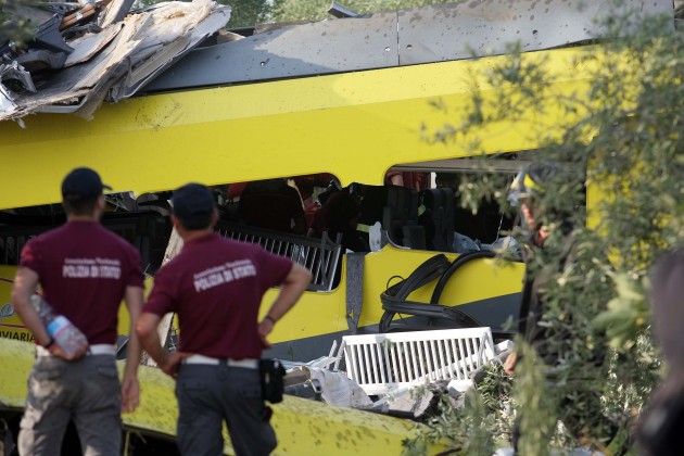 Sul banco degli imputati, il sistema a blocco telefonico che regola la circolazione ferroviaria in quella tratta a binario unico. Il ministro Delrio ha definito il sistema “tra i meno evoluti rispetto alle tecnologie disponibili” e “maggiormente a rischio”, perché “si affida interamente all’uomo, nella fattispecie all’operatività dei capistazione”. Martedì pomeriggio, Ferrotramviaria, la società che gestisce la linea dove è avvenuto lo scontro, ha dichiarato che si sospetta che i due convogli viaggiassero a una velocità tra i 100 e i 110 chilometri orari: secondo i media locali, in ogni caso, l’incidente si sarebbe verificato a causa di un errore umano. In pratica uno dei due convogli sarebbe partito in anticipo dalla stazione di provenienza: nella tratta, infatti, è in uso il sistema obsoleto del blocco telefonico. Come dire che il via libera ai treni è dato da una comunicazione attraverso telefono tra gli operatori delle varie stazioni. Secondo il Corriere del Mezzogiorno, invece, ci sarebbe stato un guasto dei sistemi che regolano le coincidenze.