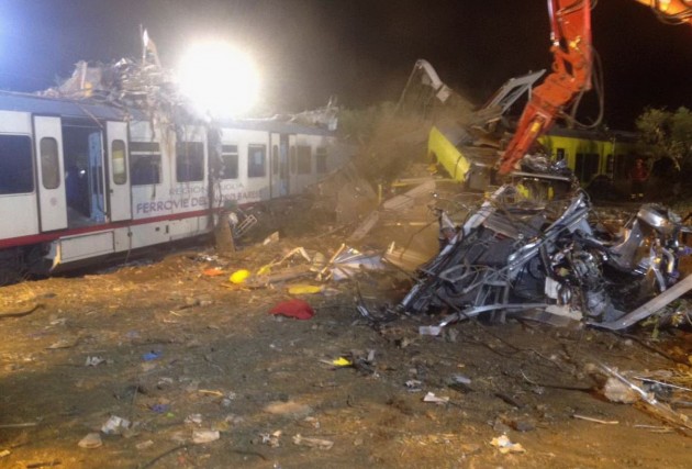 Sono continuati tutta la notte i lavori sui resti dei due treni. I famigliari delle vittime arrivati al Policlinico di Bari: "Vi prego, fateci vedere i nostri cari". La procura indaga per per omicidio colposo plurimo e per il mancato raddoppio della tratta. Il direttore generale di Ferrotramviaria spiega che il convoglio che arrivava da Andria "non doveva esserci" e che forse, vista l'alta velocità a cui procedevano entrambi, i macchinisti non hanno neanche provato a frenare. Delrio: "Nominata commissione d'inchiesta. Altri 1,8 miliardi per le reti regionali"