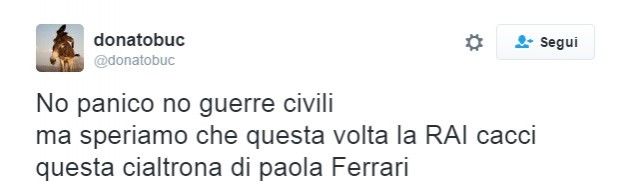A poche ore dalla strage di Nizza Twitter continua a essere per molti una piazza virtuale dove esprimere solidarietà, disperazione, a volte rabbia. I vip nostrani non si sono risparmiati: quella che ha fatto adirare di più gli utenti del social è stata Paola Ferrari. In molti si sono scagliati contro la proposta della giornalista, alcuni con ironia altri con evidente stizza.
