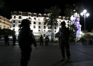 French soldiers secure the street after at least 30 people were killed in Nice, France, when a truck ran into a crowd celebrating the Bastille Day national holiday July 14, 2016. REUTERS/Eric Gaillard
