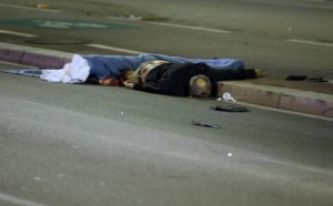 ATTENTION EDITORS – VISUAL COVERAGE OF SCENES OF INJURY OR DEATH – A body is seen on the ground after at least 30 people were killed in Nice, France, when a truck ran into a crowd celebrating the Bastille Day national holiday July 14, 2016. REUTERS/Eric Gaillard TEMPLATE OUT.