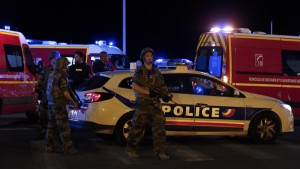 French soldiers and rescue forces are seen at the scene whare at least 30 people were killed in Nice, France, when a truck ran into a crowd celebrating the Bastille Day national holiday July 14, 2016. REUTERS/Eric Gaillard