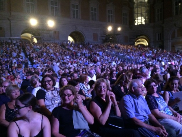 Ho cantato con Daniel Oren e per una che è stonata come una campana non è cosa da poco. Beh, non ero la sola. Ma ero in pole position praticamente inginocchiata nella primissima fila (il mio posto era sui laterali). Reggia di Caserta, terzo atto del Nabucco, terzo e ultimo appuntamento di una strepitosa “Estate da re”, rassegna fortemente voluta dal governatore De Luca, costi quel che costi. Tripudio di applausi alla fine di Va pensiero… e il maestro che con un coupe de theatre, si gira e si rivolge alla gremitissima platea: Vi va di cantare con noi? E così, spalle all’orchestra e al coro, inizia a far volteggiare la banchetta, quasi magica. Credo che anche per Oren sia stata la prima volta a dirigere un coro improvvisato di 3.000 voci. E ce la siamo più o meno cavata. Io ero letteralmente sotto il palcoscenico, ho acceso l’Iphone e non mi sono persa neanche una nota, ho inciso ogni suo respiro, ho registrato ogni sua emozione.