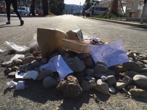 Un cumulo di sassi e spazzatura lasciato sul luogo dove è stato ucciso dalla polizia Mohamed Lahouaiej Bouhlel, autore della strage a Nizza 3