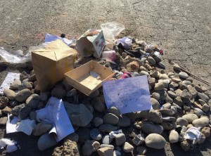 Un cumulo di sassi e spazzatura lasciato sul luogo dove è stato ucciso dalla polizia Mohamed Lahouaiej Bouhlel, autore della strage a Nizza