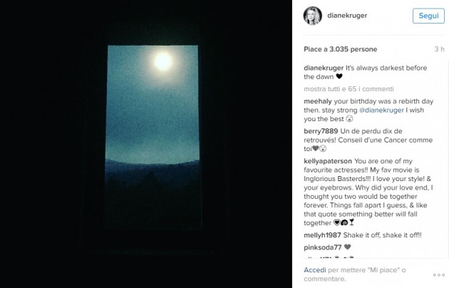La coppia aveva iniziato a frequentarsi nel 2006, dopo che la Kruger aveva lasciato l’ex marito, l’attore e regista francese Guillaume Canet. Negli anni sono sempre apparsi in pubblico come una coppia affiatata e lontana dal gossip. L’ex divo di Dawson’s Creek vive stabilmente a New York e Diane lo aveva seguito nella Grande Mela. In proposito l’attrice si era espressa durante un’intervista rilasciata a The Edit: “Trasferirmi in America è stato un passo enorme per me – e ha aggiunto – Diciamo che è stato un passo nell’età adulta, ma non è facile decidere di condividere tutta quella parte della tua vita con un’altra persona”.