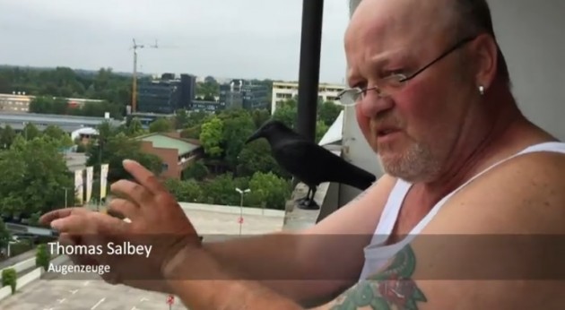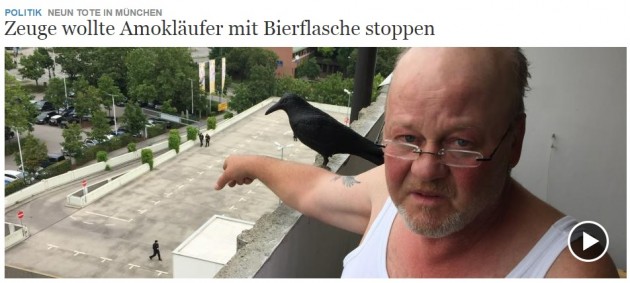 Il 18enne era sul tetto Salbey è arrivato sul balcone. Il suo palazzo sovrasta il centro, dall’alto la visuale era perfetta, anche perché il parcheggio era completamente vuoto. “La scena si è svolta proprio sotto di noi – ricorda Salbey – ho visto la gente scappare fuori dal centro commerciale, poi ho visto il killer e all’inizio ho pensato che sparasse con un fucile“. Si è accorto dopo che aveva una pistola e a quel punto ha urlato per richiamare l’attenzione della polizia. Nel video si sente chiaramente la sua voce concitata che indica alle forze dell’ordine la posizione del killer, tra una parolaccia e l’altra: “La polizia non sapeva dove si fosse nascosto l’uomo, gliel’ho indicato io”, dice con orgoglio, accarezzando un falso corvo nero in bronzo agganciato sul davanzale del balcone.