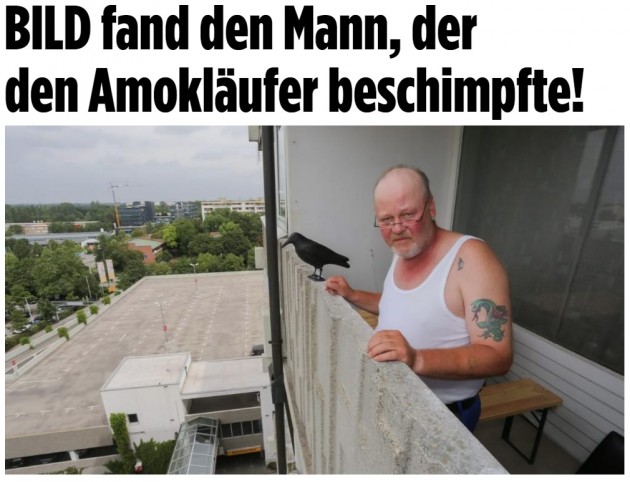 Ma a Salbey le sue motivazioni non interessavano. Gli ha tirato addosso la bottiglia di birra, urlandogli “coglione, segaiolo, stronzo e straniero di merda”. La bottiglia si è infranta sul tetto di vetro, ma “non credo che se ne sia accorto”, ha detto il 57enne che ai quotidiani tedeschi spiega: “Non ho avuto paura, anche perché ho pensato che sparasse a salve”. E invece quando il killer si è stufato di quel surreale scambio di improperi in stretto dialetto bavarese”, un colpo di pistola glielo ha indirizzato davvero. Il foro è ben visibile su una parete del balcone, come mostrano i video pubblicati da Bild e Die Welt. “Allora mi sono riparato, ma ho ancora fatto in tempo a vedere come si muoveva, era molto tranquillo”, ha aggiunto.