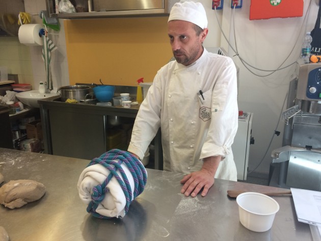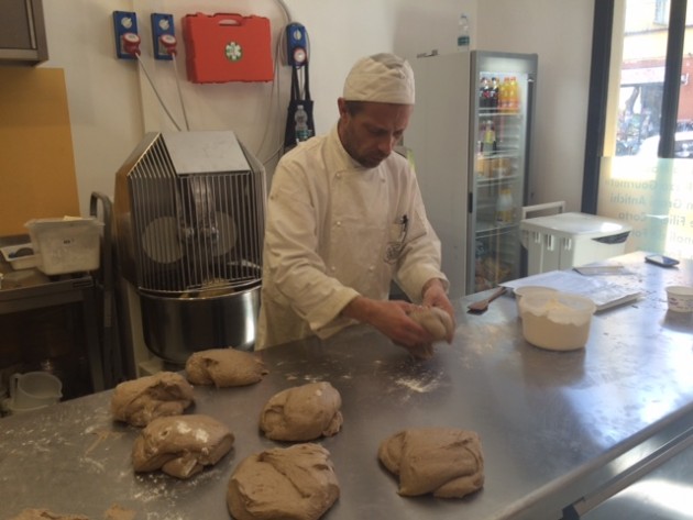 “Di sicuro non ho lo stipendio di prima, quando venivo pagato come un dirigente, ma ci ho guadagnato in salute. Non sono pentito di niente. Anzi ogni giorno che passa sono sempre più convinto di aver fatto la scelta giusta”. I ritmi per lui sono diversi da quelli di una qualsiasi panetteria. “Qui – racconta mentre inforna una pizza – usiamo la pasta madre al posto del lievito di birra e la tecnica del freddo”. Significa che per ogni pagnotta ci vogliono 18 ore di lievitazione, invece delle 3 ore tradizionali. “Diciamo che facciamo il mestiere come si faceva prima della guerra. Siamo tornati indietro, ma la qualità è migliore: il nostro pane è fatto con farine non raffinate di produttori locali, è più salutare e più digeribile”.