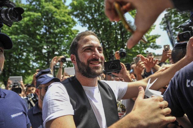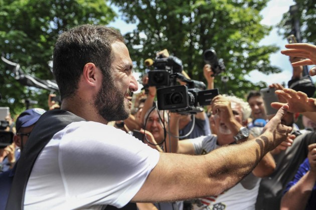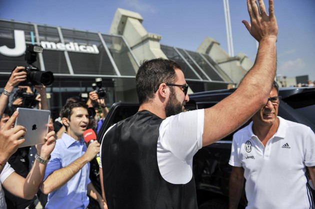 Il nuovo acquisto bianconero Gonzalo Higuain a Torino accolto da una massa di tifosi esultanti. L’ex attaccante del Napoli è arrivato poco dopo le 13.30 nella sede della Juventus in Corso Galileo Ferraris, dopo aver terminato le visite mediche al J Medical. Ad attenderlo tifosi esultanti e alcuni giornalisti. Il Pipita, che non ha rilasciato dichiarazioni al suo arrivo, ha salutato i tifosi presenti prima di entrare in sede.