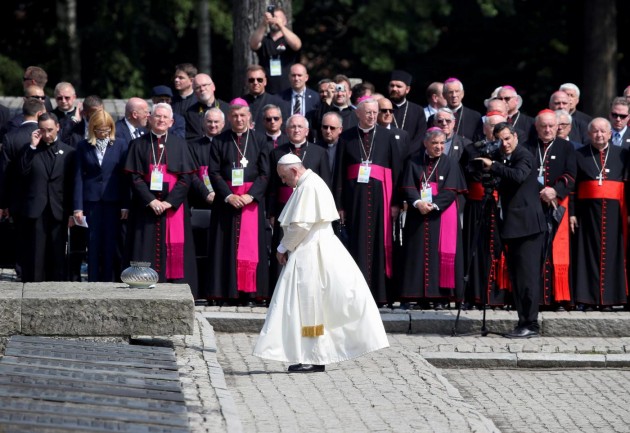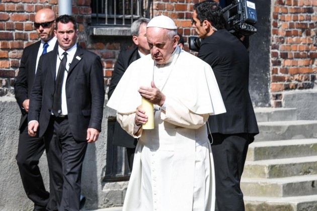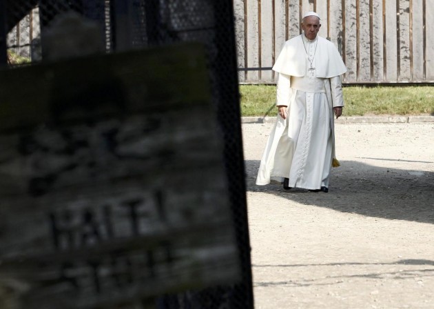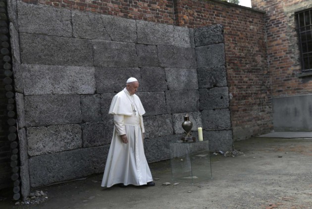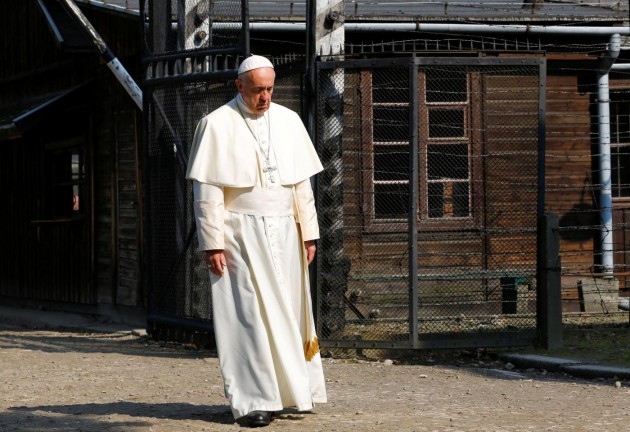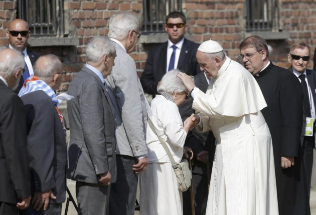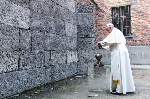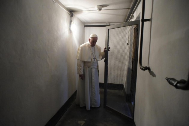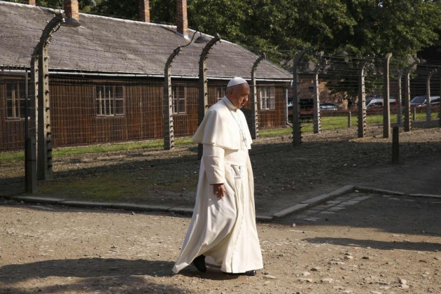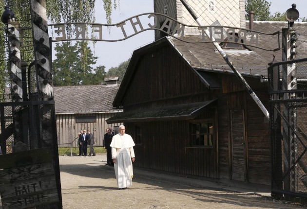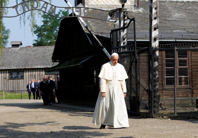 Ha attraversato da solo l’arco d’ingresso del campo di Auschwitz, con il capo chino e in silenzio. E’ passato sotto la scritta ‘Arbeit macht frei’ (Il lavoro rende liberi). Poi si è seduto su una sedia con le mani giunte, e ha pregato per diversi minuti nella piazza dell’appello. Il luogo dove avvenivano le impiccagioni dei prigionieri, accanto al muro della morte, dove gli internati venivano fucilati. Papa Francesco è arrivato nel campo di sterminio nazista ad Oswiecim, a circa 70 chilometri da Cracovia dove si svolge la Giornata mondiale della gioventù, intorno alle 9 e 30. Ha scelto di non pronunciare discorsi nel luogo simbolo dell’Olocausto. Ma ha voluto lasciare un messaggio: “Signore, abbi pietà del tuo popolo! Signore, perdona tanta crudeltà“. Una frase scritta in spagnolo diffusa con un tweet dal Museo Memoriale di Auschwitz.