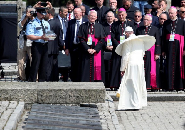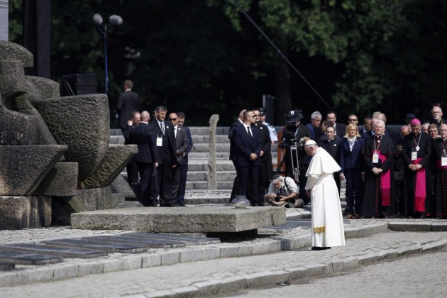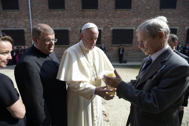 Dopo aver lasciato Auschwitz, dal quale è uscito da solo e a piedi, come era entrato, è arrivato al campo di concentramento di Birkenau a pochi chilometri dal primo. Qui ancora momenti di silenzio e l’incontro con venticinque ‘giusti delle nazioni’, persone che hanno messo a rischio anche la propria vita per aiutare gli ebrei durante la persecuzione nazista. Nonostante ci siano più di mille ospiti, per tutto il momento della preghiera nel campo c’è stato un silenzio surreale. Il pontefice è passato da solo davanti ad alcune lapidi commemorative e si è raccolto in preghiera. Quindi ha acceso una lampada. Il silenzio è stato rotto dal canto, in ebraico, del salmo 130 (De profundis) del rabbino capo della Polonia.