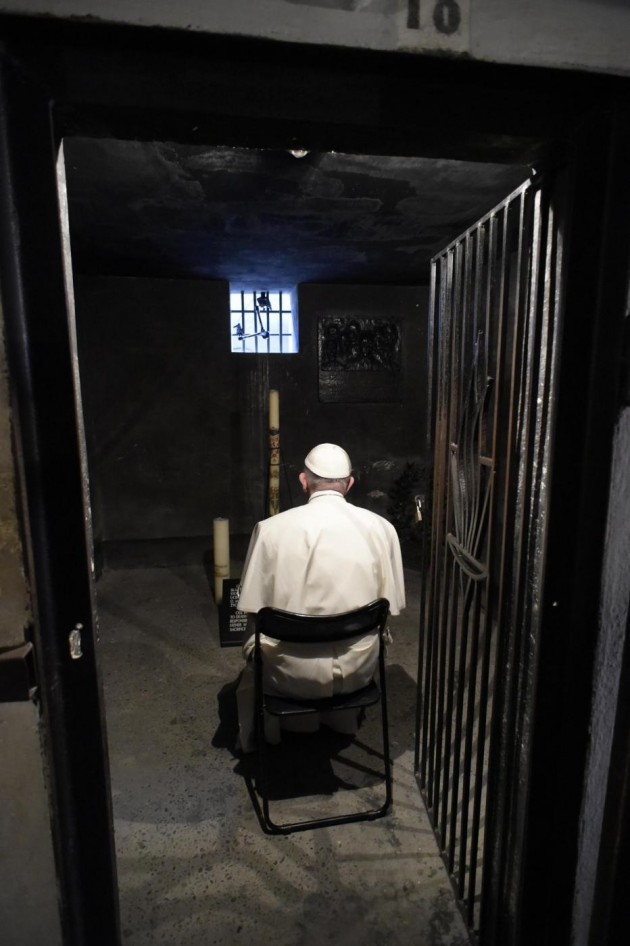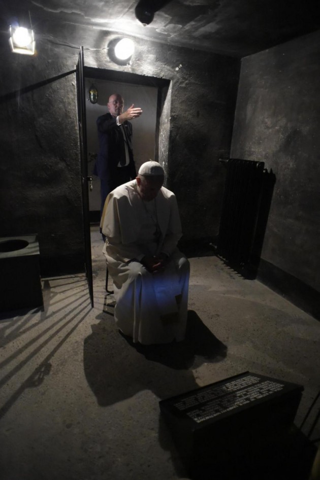 Dopo la preghiera, Bergoglio ha incontrato un gruppo di sopravvissuti alla Shoah. Per ciascuno c’è stato un momento personale con il pontefice, con qualche scambio di parole, strette di mano, abbracci. Uno di loro ha regalato al papa una candela con la quale Francesco ha acceso una lampada davanti al “muro della fucilazione”. Bergoglio si è fermato poi davanti al Blocco, il cosiddetto ‘Blocco della morte‘, dove si trova anche la cella in cui fu ucciso san Massimiliano Kolbe, il francescano polacco che offrì la sua vita ai nazisti in cambio di quella di un padre di famiglia. Anche in questa stanza Francesco si è seduto per un altro lungo momento silenzioso di preghiera.
