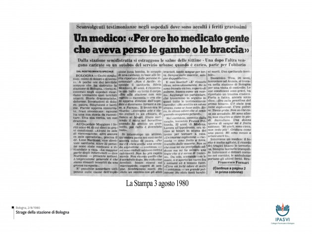 “Il 2 agosto fu il nostro 11 settembre – racconta Pietro Giurdanella, presidente della fondazione bolognese – all’epoca l’Italia non era preparata a gestire un così alto numero di feriti, non c’era il 118, che nacque proprio in seguito alla strage. Sì, avevamo qualche ambulanza, ma fu l’imponente opera di solidarietà messa in atto da soccorritori e cittadini volontari ad avere un ruolo chiave in quella tragedia. Ed è questo ciò che vogliamo tramandare tramite la mostra, soprattutto in un momento in cui l’Europa si trova a fare i conti con fatti altrettanto drammatici”.
