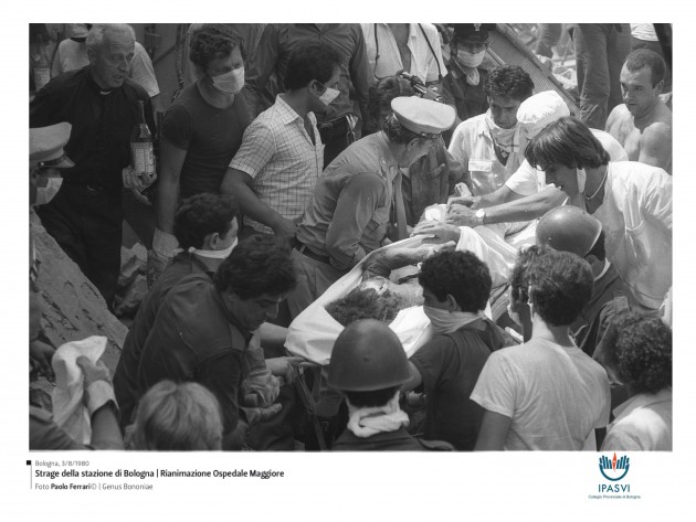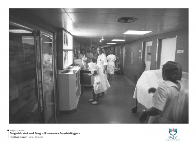 Chi si trovava in città, quel 2 agosto 1980, il boato dell’esplosione alla stazione ferroviaria di Bologna lo ricorda ancora come fosse ieri. Le macerie in piazza Medaglie d’Oro, le grida dei feriti, la polvere che soffocava occhi e gola. E poi i camici bianchi di soccorritori e infermieri, che lavorarono notte e giorno, in prima linea per tentare di arginare la ferita provocata dalla più efferata strage messa in atto in Italia dal dopoguerra. Trentasei anni dopo, per ricordarli, e per raccontare la tragedia dal punto di vista di chi prestò soccorso, il Collegio bolognese degli infermieri Ipasvi ha organizzato nella propria sede la mostra Due minuti dopo, inaugurata il 29 luglio, alla presenza di sopravvissuti e soccorritori. Cinquanta scatti in bianco e nero realizzati quel 2 agosto dal fotografo Paolo Ferrari, acquistate ed esposte dall’Ipasvi “per non dimenticare né quel terribile massacro, né l’incredibile risposta umana e sociale di una città ferita contro il terrorismo”.