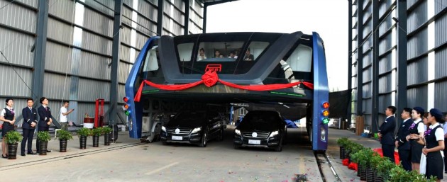 Cina, ai nastri di partenza l’autobus che viaggia sopra le auto – FOTO e VIDEO