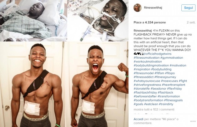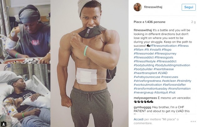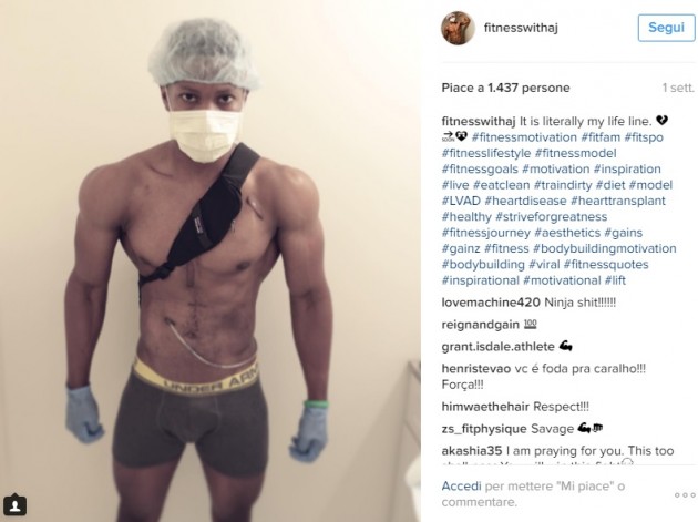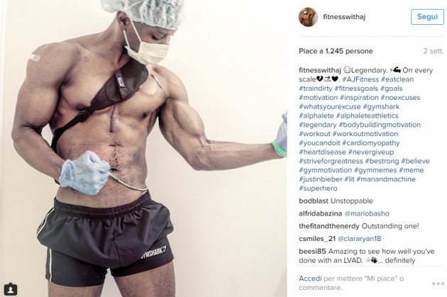 Il bodybuilder è affetto dalla cardiomiopatia ipertrofica, una malattia che nella maggioranza dei casi è genetica e che ispessisce le pareti del cuore facendolo diventare ipertrofico. In attesa del trapianto, i medici gli hanno installato il “dispositivo di assistenza ventricolare“: una pompa artificiale che sostituisce il lavoro che dovrebbe compiere il suo cuore. “Sono lo zombie più bello che abbiate mai visto”, dichiara scherzosamente il giovane atleta durante l’intervista e commenta così le sue cicatrici “sono bellissime, raccontano la tua storia a chi le vede”.